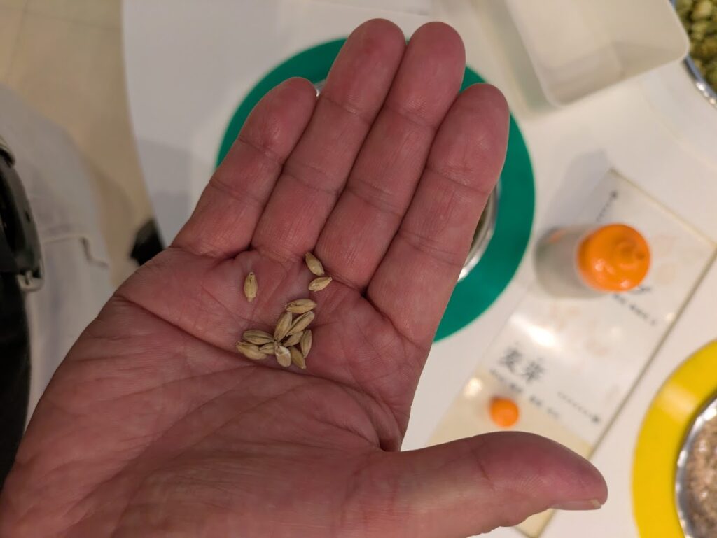 写真上から、原料の大麦、ホップ、発酵窯、発酵前の麦芽ジュース(左が一番搾り右が二番搾り)甘くておいしい、3種類のビールが試飲できる(おつまみにかきのたねが貰えるが、物足りないので売店で買い足してしまった)工場は機械化が進んでいて人がいない。