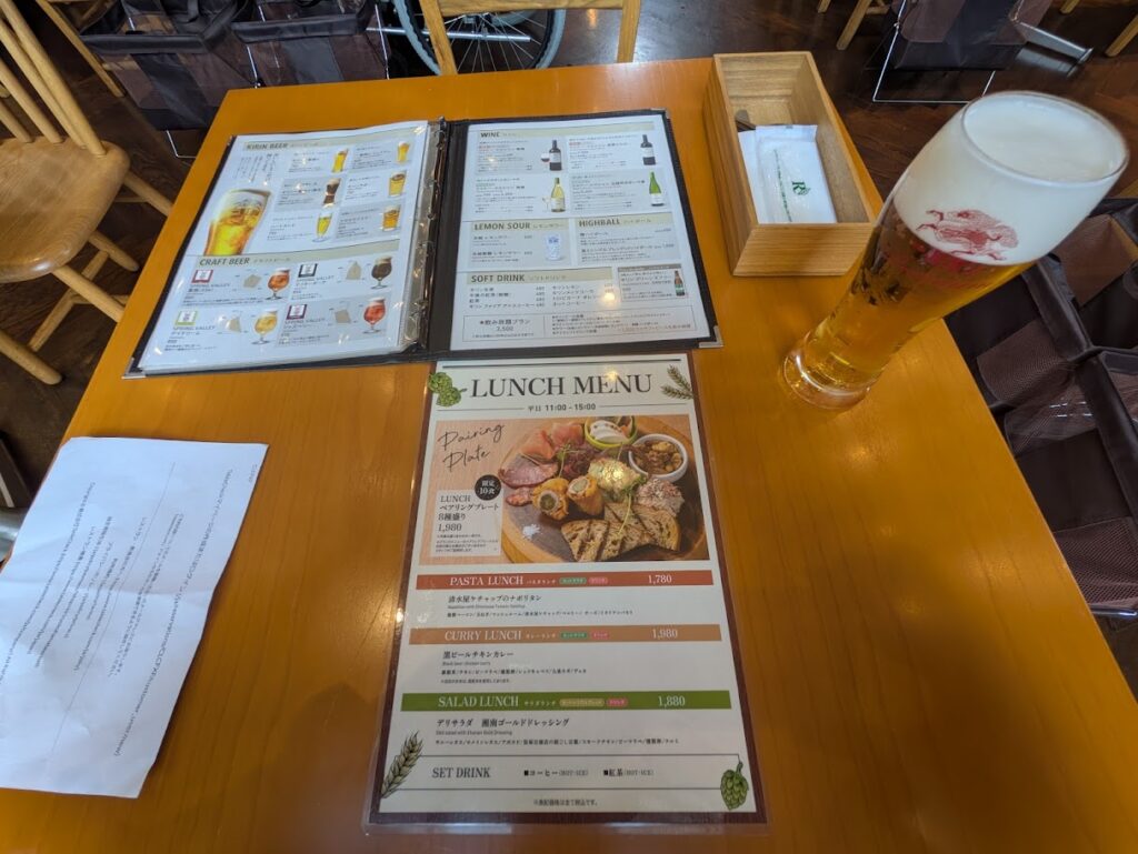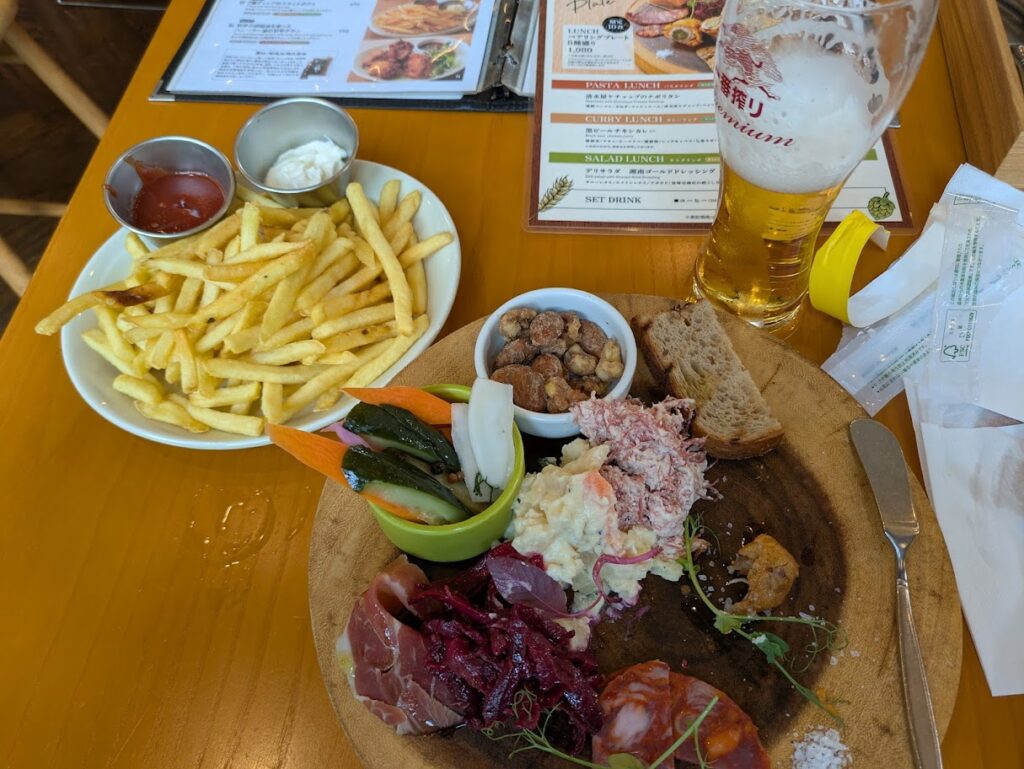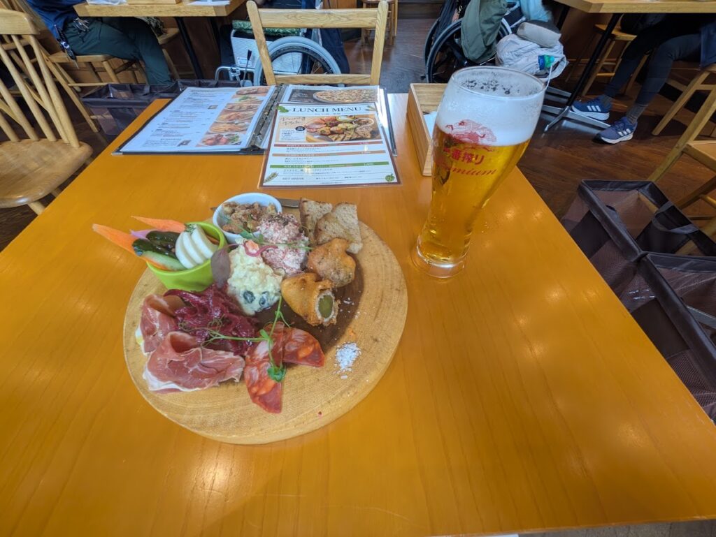 工場見学の後は、おいしい料理でさらに満足!工場併設レストランを予約しておいたので真っ昼間からビールとつまみをいただきランチとさせていただきました。