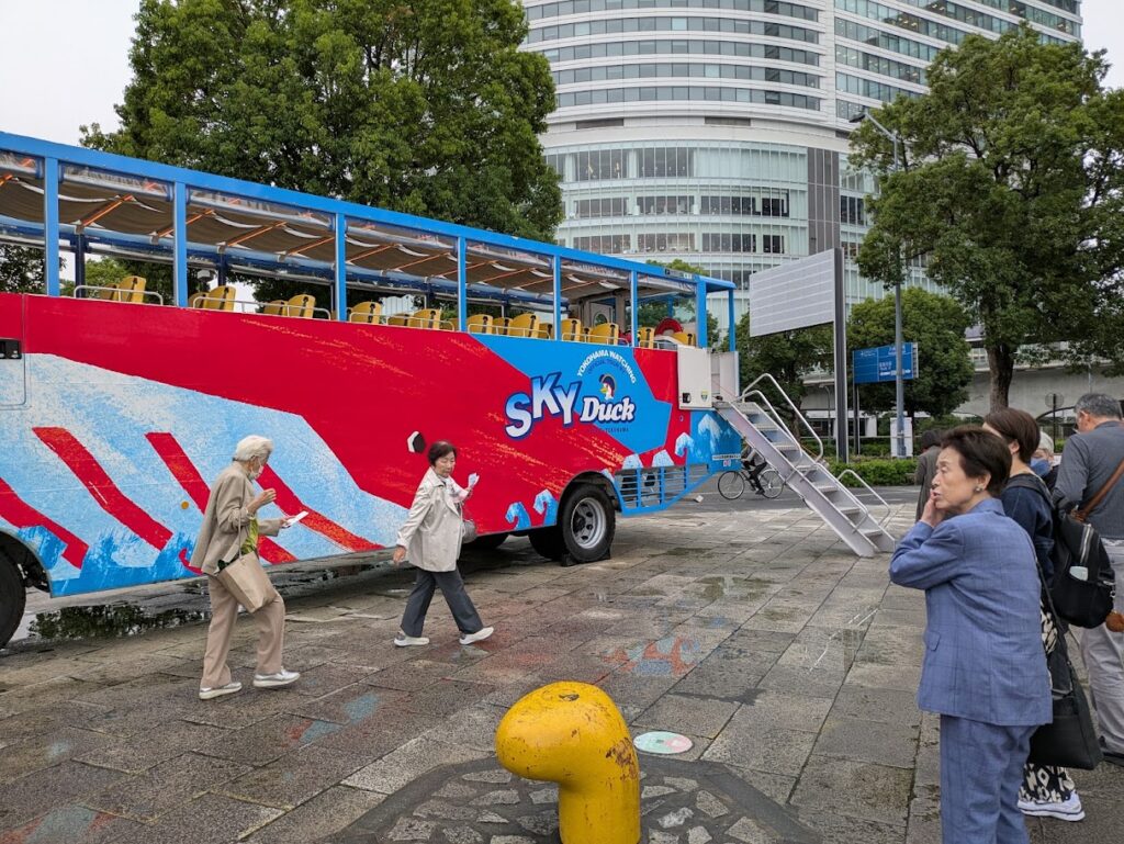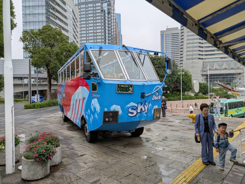横浜みなと博物館を見ようと思ったんですが、すぐ隣に水陸乗用車による横浜港観光バスがありちょうど出発時間グッドタイミグでチケットもとれたので迫力いっぱいのスプラッシュ!水陸両用バス「スカイダック横浜」に乗り込む。